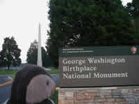![]() Reading along the map, we found that George Washington's birthplace here at Wakefield was only 14 miles from where we were already destined (Lyells). Despite the veil of darkness setting in, we pushed ahead and got a peek of what is now nothing physical, but remains the site, and a monument to George, and the family burial site of his forefathers. |